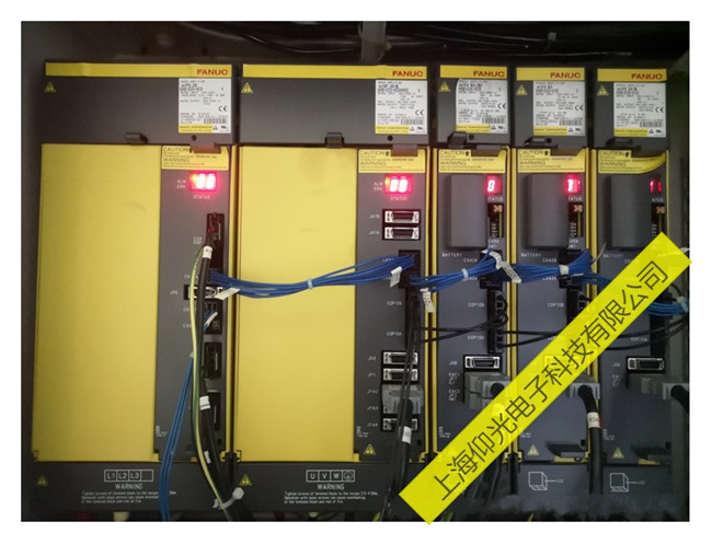 發(fā)那科伺服驅(qū)動器A06B-6057-H402報警414故障維修 :根據(jù)對發(fā)那科故障的詳細檢查,伺服驅(qū)動器的200V三相輸入電壓、I/O軸模塊、連接電纜、接觸器均正常。將I/O LINK軸的CX29,CX30進行短接,脫開電機,空載運行,故障依舊發(fā)生?梢耘袛喙收显蛟谒欧(qū)動器上,最后檢查發(fā)現(xiàn)是伺服驅(qū)動器200V三相進線插頭接線不良導(dǎo)致的414故障報警,更換三相進線插頭后,故障消除。