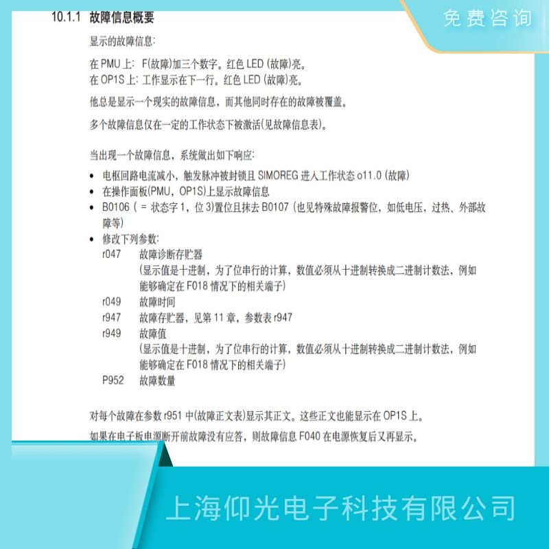 上海仰光電子科技有限公司成立于2011年,是一家專業(yè)從事工業(yè)自動(dòng)化設(shè)備維修、維護(hù)及電氣系統(tǒng)維修改造的高科技公司。主要針對(duì)西門子(SIEMENS) ABB維修、包米勒維修,力士樂維修,發(fā)那科維修,貝加萊維修,AB維修,科爾摩根維修,倍福維修,富士維修,安川維修,三菱維修,海德漢維修,穆格維修,發(fā)格維修,普洛菲斯,路斯特維修,倫茨維修,斯德博維修,寶德維修,NUM維修,SEW維修,施耐德(Schneider)等品牌的驅(qū)動(dòng)器,變頻器、伺服電機(jī)、直流調(diào)速器、軟啟動(dòng)器、工控機(jī)、PLC、觸摸屏、數(shù)控系統(tǒng)、單片機(jī)、電路板等各種進(jìn)口工業(yè)儀器設(shè)備,服務(wù)中心配備了百萬備品備件以及完備的診斷檢測儀器和軟件診斷技術(shù),擁有一支技術(shù)精湛、經(jīng)驗(yàn)豐富的技術(shù)團(tuán)隊(duì)。上海仰光電子科技有限公司維修免費(fèi)全國,提供免費(fèi)檢測,免費(fèi)咨詢,同一故障六個(gè)月質(zhì)保,修不好不收費(fèi)用,如有任何故障可隨時(shí)聯(lián)系我們,上海仰光電子科技有限公司工程部溫馨提示:如果設(shè)備出現(xiàn)報(bào)警或者損壞,不是專業(yè)技術(shù)人員請(qǐng)勿私自拆卸,以防帶來安全隱患以及給設(shè)備造成二次傷害.上海仰光電子-您身邊的設(shè)備維修維護(hù)專員。